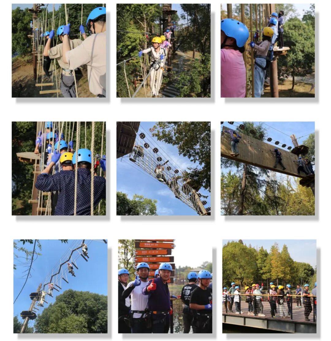 時間:2023年11月3號 地點:無錫飛躍森林探險樂園(農博園) 早上專業的教練帶領大家玩著熱身小游戲,重點訓練了大家的默契度、敏感度、服從性;