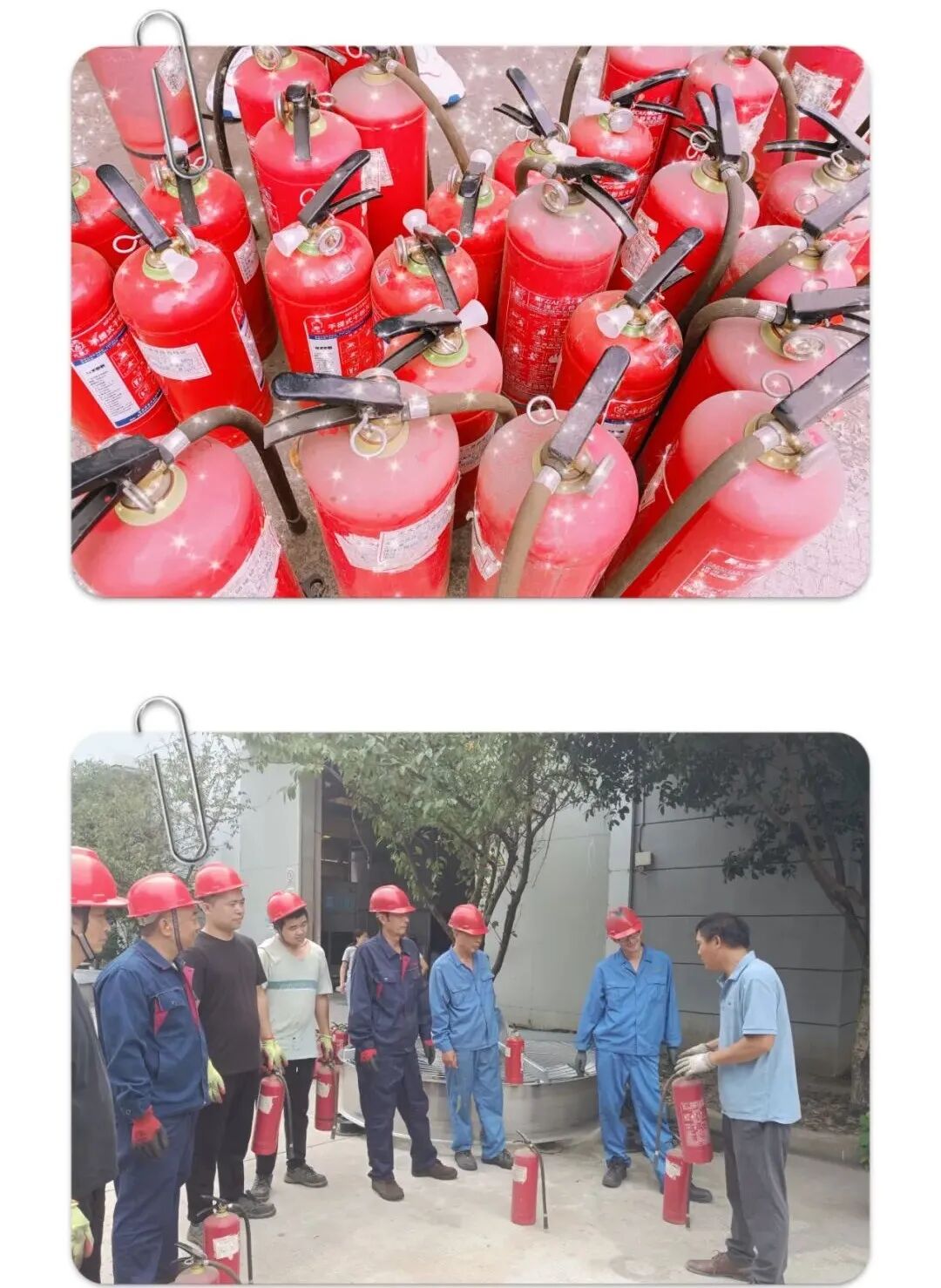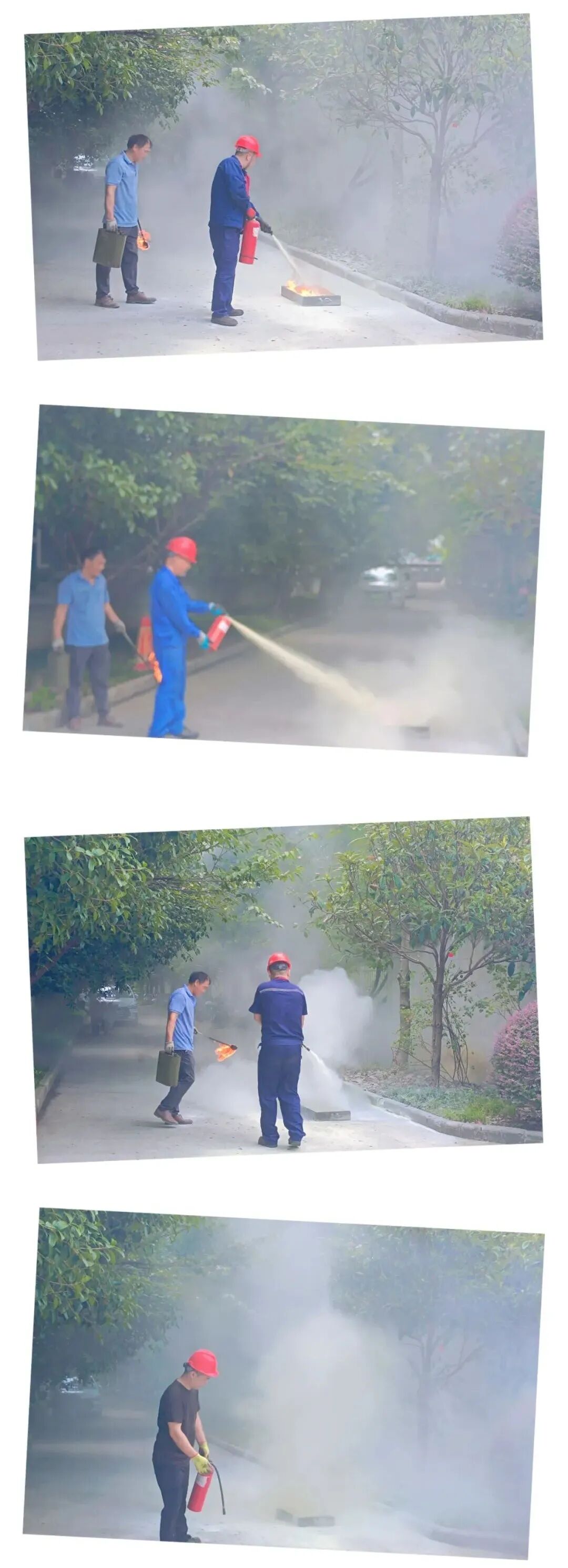 事后,每個人都進行了滅火器實操,拔掉螺栓,打開滅火器,與火源相距2處對準火源開始滅火。